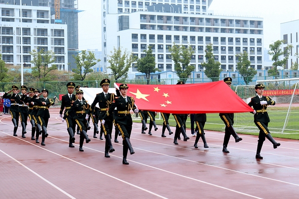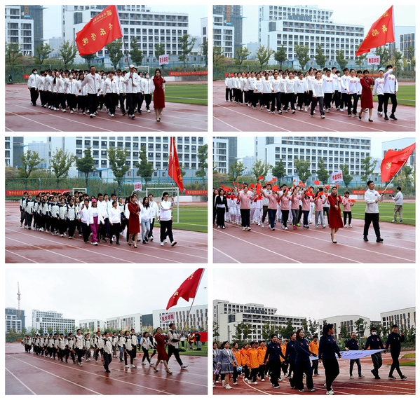 伴随着激昂的进行曲,国旗方阵、会旗方阵迈着铿锵有力的步伐率先进入会场,英姿飒爽。裁判员方阵、运动员方阵紧随其后,气宇轩昂。随后,国歌奏响,国旗升起,在场师生全体起立行注目礼。庄严的升旗仪式后,校党委书记周明洁宣布运动会开幕。
