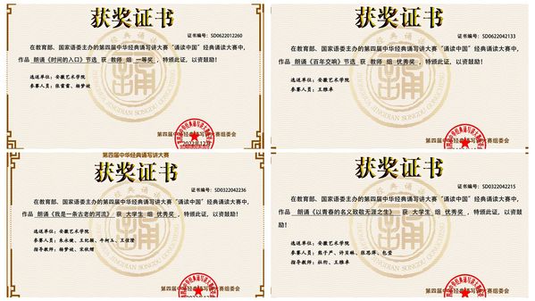 传媒学院教师王雅卓朗诵的作品《百年交响》(节选)获教师组优秀奖。播音与主持艺术专业学生朱永健、王纪颖、牛柯玉、王佳澄朗诵的作品《我是一条古老的河流》以及熊子严、许贝琳、张思萍、包莹朗诵的作品《以青春的名义致敬无涯之生》获大学生组优秀奖。