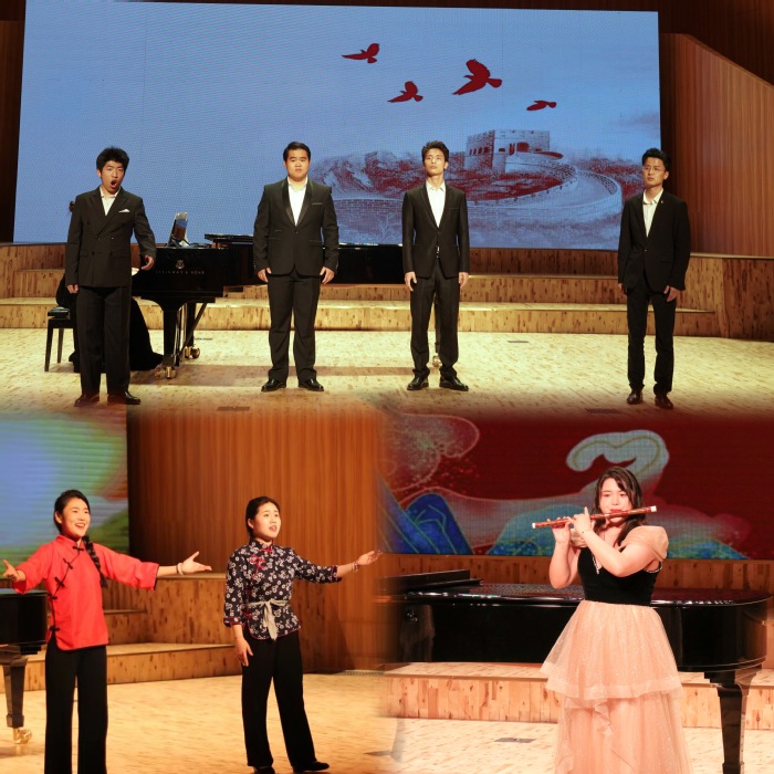 4月12日晚七点,由中共安徽艺术学院音乐学院总支部委员会、共青团安徽艺术学院委员会主办,音乐学院第一、第二学生党支部承办,音乐学院教工党支部、团总支协办的“唱支山歌给党听”主题音乐会在音乐南楼音乐厅深情唱响。