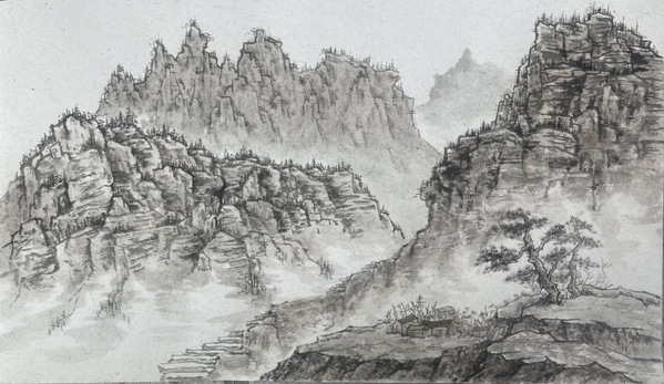 身处红色革命圣地,师生们深受伟大精神的鼓舞。李龙昊、郭志鹏、耿良宝、陈续同学集体创作《巍巍太行》,高磊同学创作《太行人家》,两副作品表现了东部太行山山势陡峻、峰峦峭拔的自然景观。