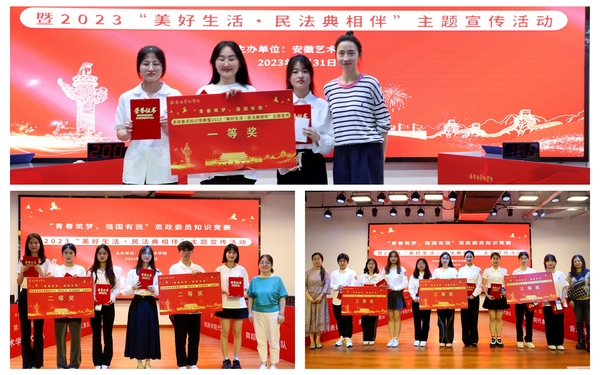 为提升班级思政委员的政治素质和理论水平,提升思政委员主人翁意识,5月31日,学校在大学生活动中心举行“青春筑梦,强国有我”思政委员知识竞赛暨“美好生活·民法典相伴”主题宣传活动。