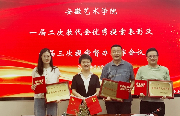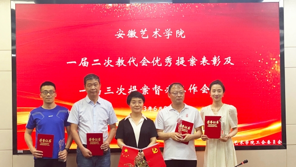6月9日上午,学校一届二次教代会优秀提案颁奖典礼暨一届三次教代会提案督办工作会议在综合楼823会议室举行。党委书记韩军为优秀提案人代表和提案办理先进单位颁发奖杯、证书。党委委员、发展规划与科研处处长、提案工作委员会主任孙来法参会。行政负责人,校教代会执委会副主任沈端良主持。