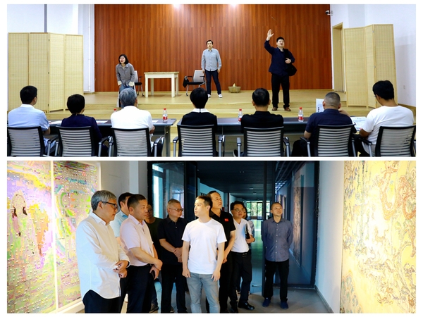 汪冬一行还实地观看话剧《共产党员李开文》(暂定名)排练,欣赏国家艺术基金2022年度传播交流推广资助项目——综合材料绘画作品展览展出作品。