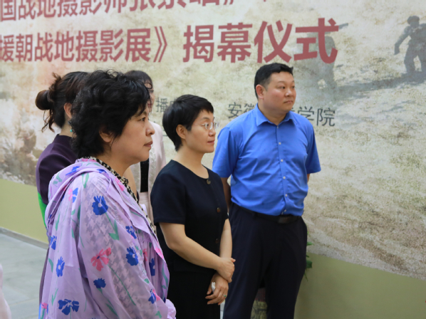 6月19日下午,由安徽省文联、安徽广播电视台、安徽艺术学院联合主办的纪录片《光与剑——中国战地摄影师张崇岫》开拍仪式暨《张崇岫抗美援朝战地摄影展》揭幕仪式在传媒学院一楼展厅举行。安徽省文学艺术界联合会主席陈先发,安徽广播电视台党委委员、副台长邵晓辉,安徽省摄影家协会主席许国,安徽省影视家协会主席禹成明,安徽广播电视台农业农村全媒体中心总监袁卫东出席仪式。党委书记韩军,党委副书记、校长樊嘉禄观看摄影展。党委委员、纪委书记、监察专员宣扬出席。