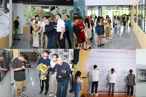 揭幕仪式后,张崇岫和同学们一起观看了摄影展,向同学们讲述当时爬冰卧雪、炒面配雪、截获坦克等场景。一张张冒着生命危险拍下的摄影作品,真实展现了志愿军战士艰苦的作战环境、枪林弹雨的战争实况。