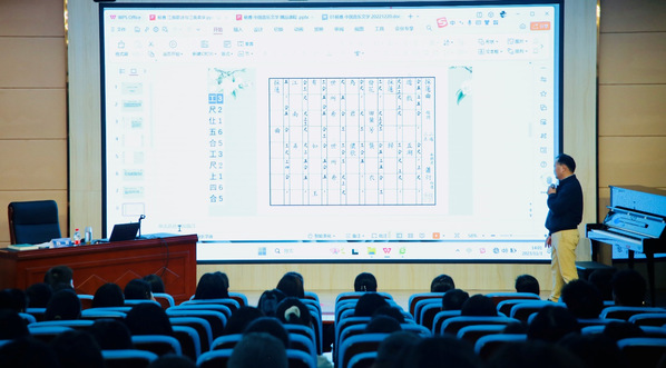 仪式之后,杨赛所作的学术讲座《江南歌诗与江南美学》和“江淮潮起和清歌” 古谱诗词音乐会分别在音乐南楼学术报告厅和音乐厅举办。讲座内容从音乐本体特征延展到江南美学,以江南歌诗与江南美学为核心,用实例引导师生学会工尺谱识谱、唱谱。师生在互动中激发了学习传统音乐的热情与动力。