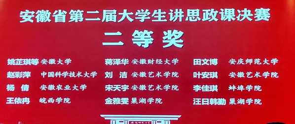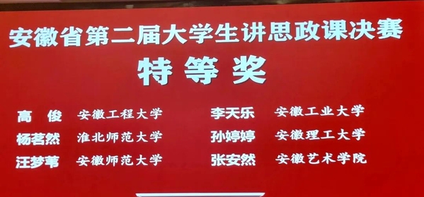 12月22日,安徽省第二届大学生讲思政课决赛在芜湖圆满结束,我校学子荣获特等奖1项、二等奖3项。可喜的是,我校学子连续两届获得特等奖,实属不易。