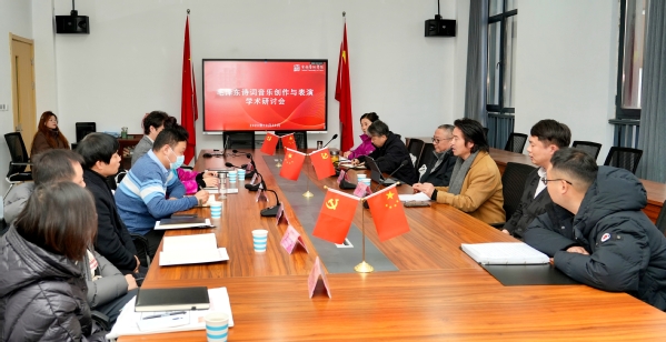 当天下午,毛泽东诗词音乐创作与表演学术研讨会在音乐南楼104会议室举行,安徽省音协副主席罗可曼,校党委委员、发展规划与科研处处长孙来法,音乐学院党总支书记、院长李伟,宿州学院音乐学院副院长钦媛,青年作曲家周国歧教授出席研讨会。