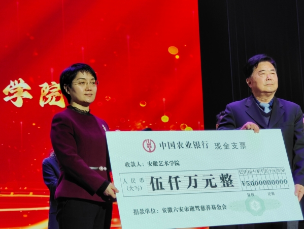 安徽六安市迎驾慈善基金会此次捐资5000万元,为支持安徽艺术学院更好办学,高效推动迎驾艺术产业学院项目打下坚实的基础。
