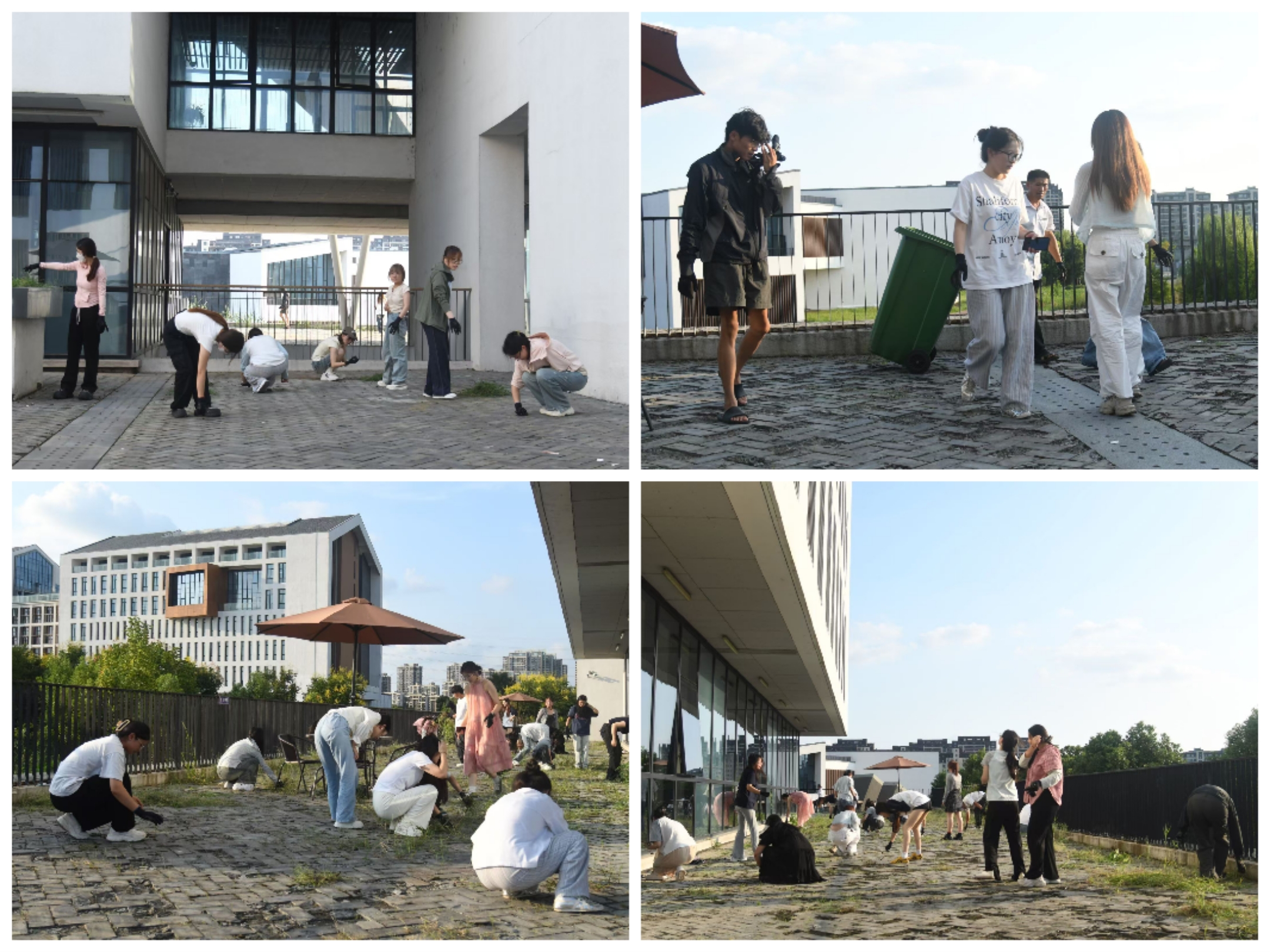 9月3日,学院组织学生志愿者对美术楼周边公共区域进行环境整治,清理垃圾、拔除杂草、擦拭公共设施,营造了干净、整洁、有序、文明的校园卫生文明环境。