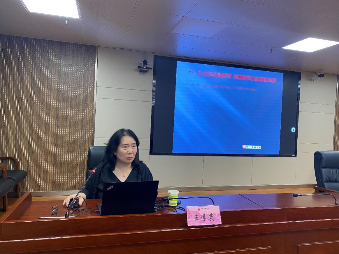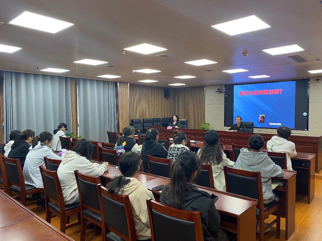 10月21日下午,由校党委宣传部举办的新闻宣传能力提升培训班最后一讲在综合楼717会议室举行。安徽日报报业集团安徽商报融媒体中心采访部主任、高级记者王素英为在场师生讲授高校新闻采写问题与报道技巧。校党委宣传部副部长尹广富主持讲座。