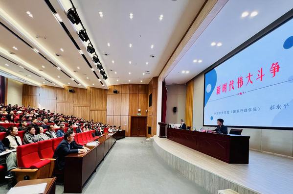 报告中,郝永平结合党的二十届三中全会精神,从伟大斗争的时代背景、基本涵义、历史特点、合理边界、实践要求等五个方面,以习近平总书记关于伟大斗争的重要论述为切入点,紧扣世情、国情、党情,“全景式”解读把握新的历史特点、发扬斗争精神、增强斗争本领等重要内涵,深刻阐释伟大斗争精神对于党领导全国各族人民战胜各种风险挑战、全面建设社会主义现代化国家、全面推进中华民族伟大复兴的重要意义。