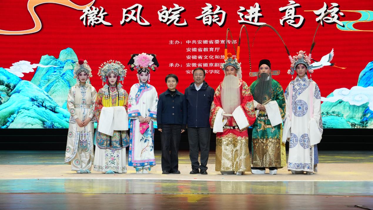 近日,由中共安徽省委宣传部、安徽省教育厅、安徽省文化和旅游厅联合主办,安徽省徽京剧院、安徽艺术学院联合承办的“徽风皖韵进高校”艺术展演活动在我校实验剧场举行。校党委书记韩军,安徽省徽京剧院党总支书记、院长唐晓及现场百余名师生观看了演出。