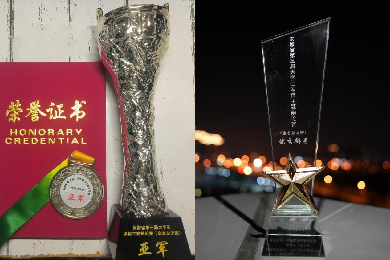 历时近一个月的比赛,经过合肥分赛区和省总决赛的7场角逐,我校辩论队从全省90余支队伍中脱颖而出,再次与安徽大学博士生领衔的团队对决决赛赛场。比赛期间,两支队伍围绕“加强新时代校园诚信文化建设,应以‘诚’为本/应以‘信’为本”为辩题展开交锋。作为反方辩手,我校传媒学院新闻学专业杨艺凡同学带领队友辩驳有据、妙语连珠,用严密的逻辑和犀利的语言,一次次博得现场观众的喝彩与掌声,最终斩获亚军。设计学院季煌坤同学荣获全场优秀辩手。