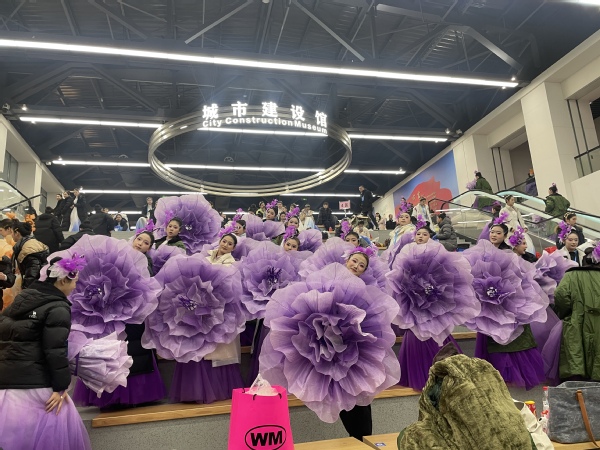 女生们则经历了从“零”到“整”的拼图式教学。部分骨干先跟导演学动作,再一传十、十传百,把每一个手势、每一次转身复制到143人的队形里。排练厅的镜子不够用,就对着窗户的反光练;音乐停了,嘴里还在数拍子。玉兰花伞的开合角度要完全一致,多一度少一度都不行。“我们要让观众觉得,143个人手里是同一把伞。”