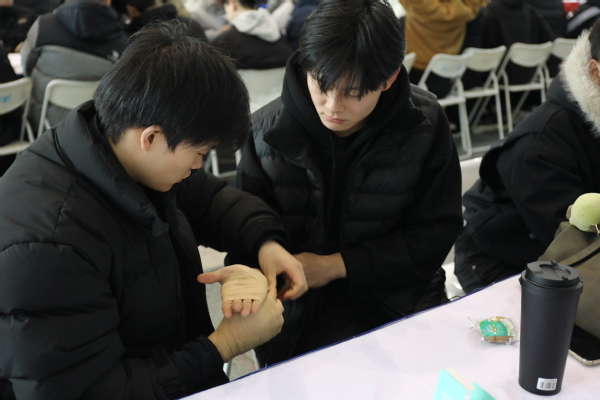 男生们印象最深的,是学校为他们定制的长款保暖大衣。梁家林说:“无论排到多晚,老师都陪着,还有热乎的姜茶。”戚英杰记得更细:“学校给我们准备了很多很多暖宝宝,还发了特别保暖的长袄。”