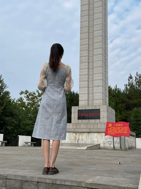周羿纬去到六安苏家埠纪念馆,打卡了战役纪念碑。她看到陈列馆关于苏家埠战役的详情介绍以及场景还原,切实感受到解放军的艰苦与智慧。她更加深刻的理解了现在的江山是革命先辈打下的,现在的幸福生活是革命先辈用鲜血换来的,我们必须珍惜。