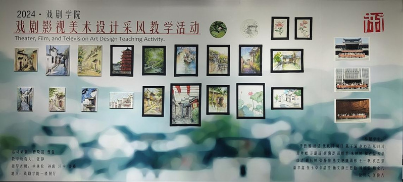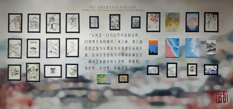 9月4日,23届戏剧影视美术设计本科班暑期采风作品展在戏剧学院一楼举行。学子们深入安徽省的文化瑰宝之地——安徽省美术馆、渡江战役纪念馆以及充满水乡风情的三河古镇,用他们的画笔和心灵捕捉了这片土地上的独特韵味与深厚文化底蕴。