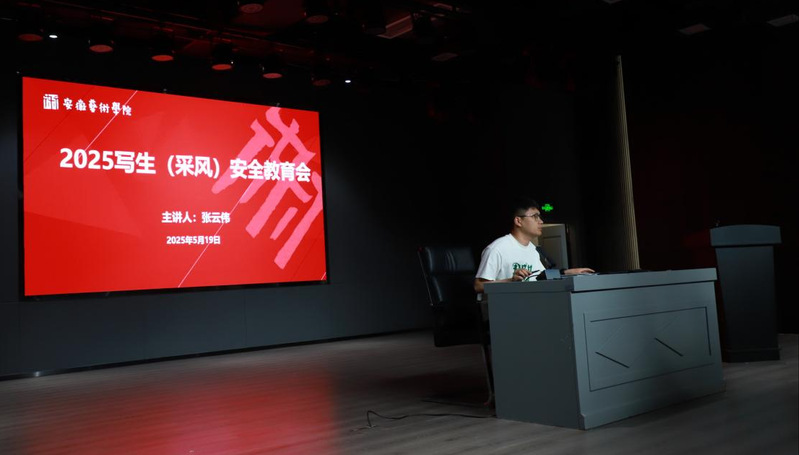 2025年5月19日戏剧学院团总支书记张云伟为出行的安徽艺术学院戏剧学院戏剧影视美术设计专业24 级舞美 1 班、2 班(本科)共 40 名学生开展了安全工作会议。