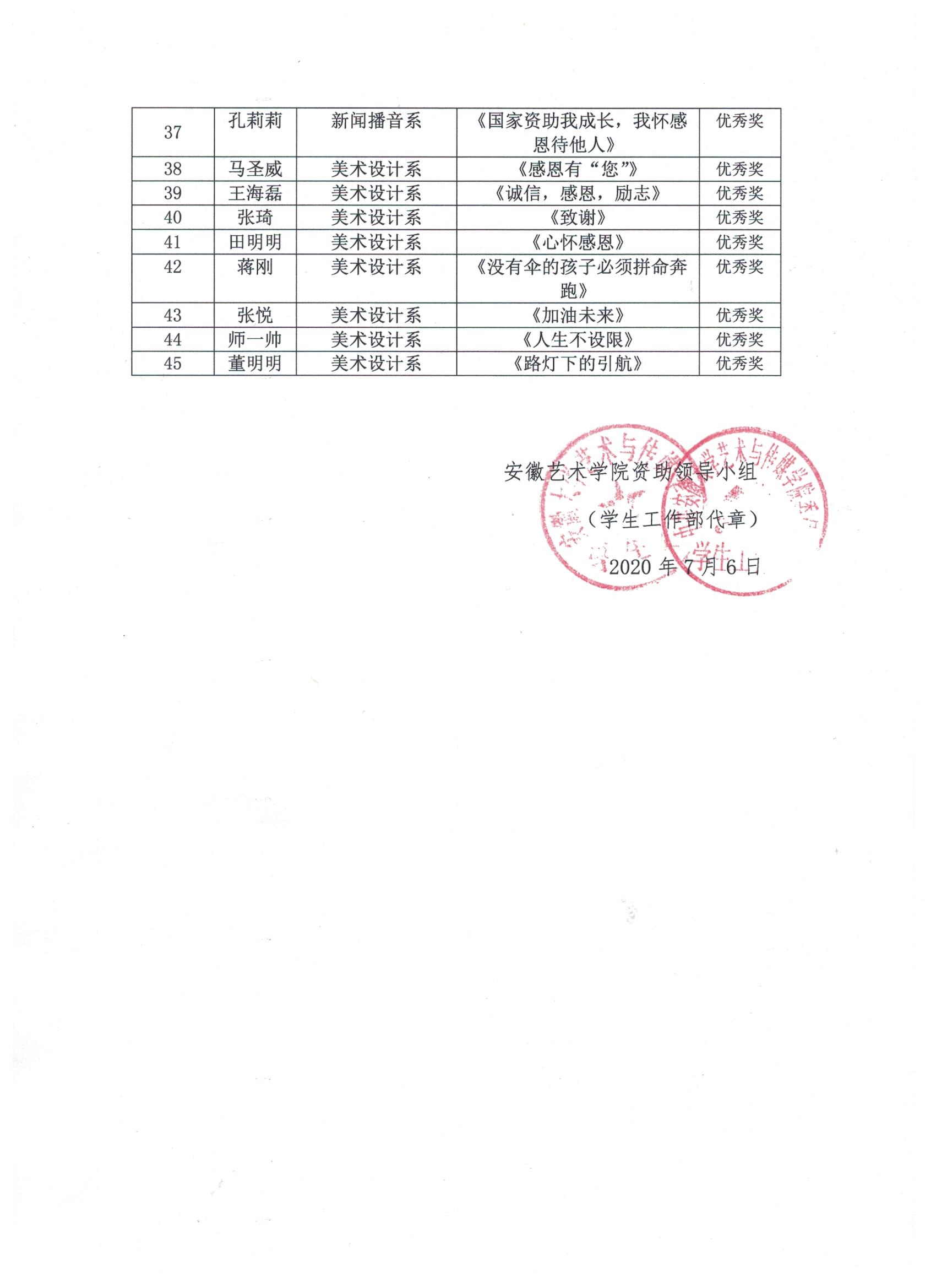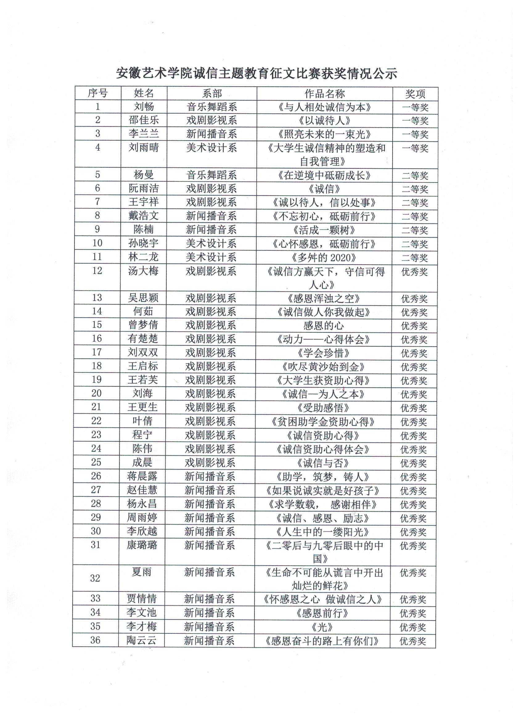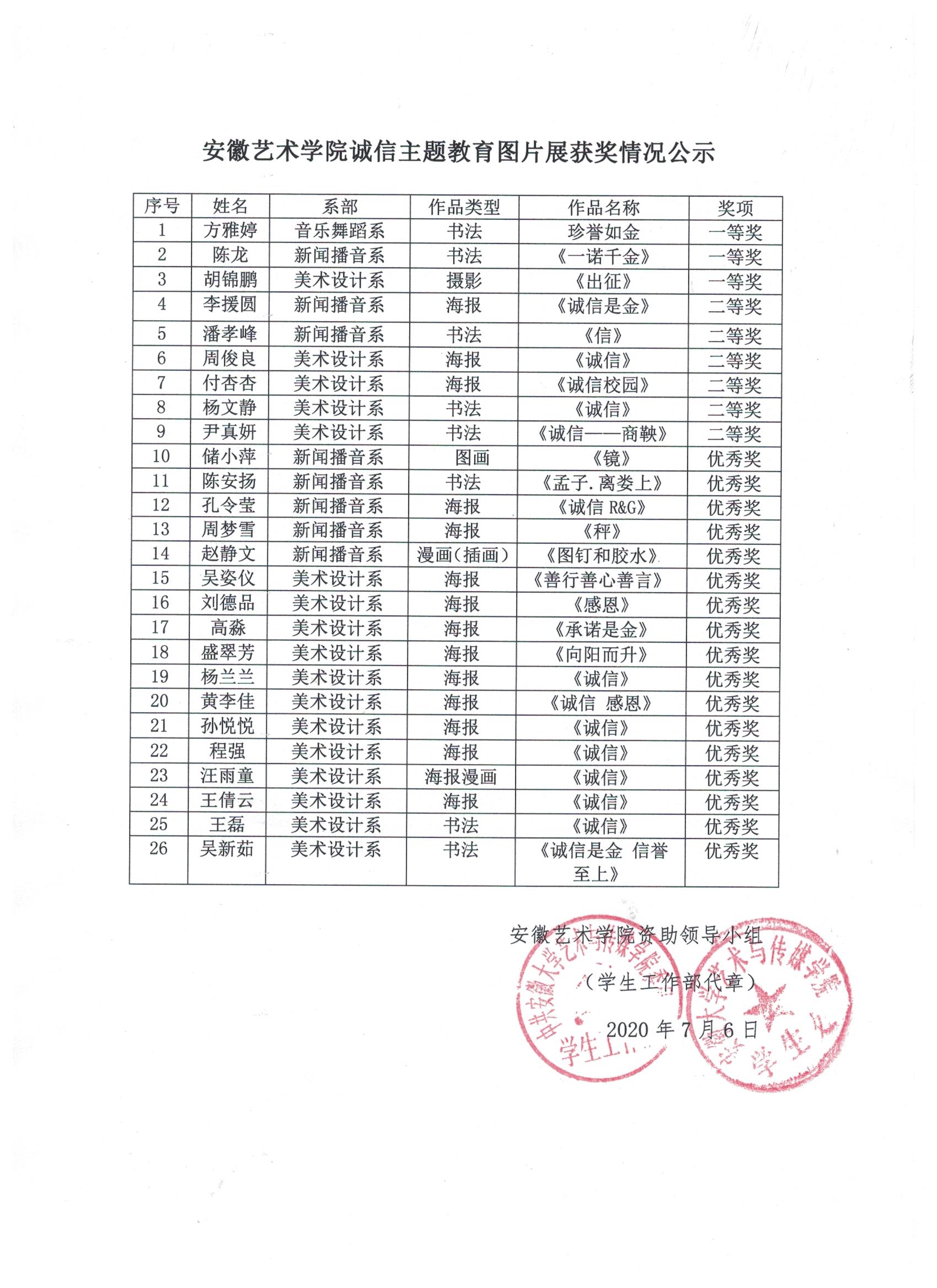 安徽艺术学院2020年诚信资助主题教育图片展及征文比赛获奖结果公示