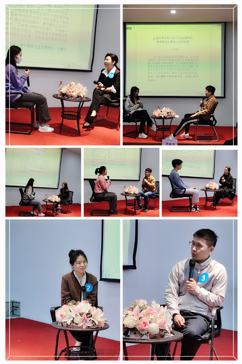 比赛现场,参赛选手沉着冷静、逻辑严谨、情理兼顾、各显功力,充满了正能量,展示了我校辅导员扎实的理论功底、深厚的专业素养,精彩的表现赢得在场观众的阵阵掌声。