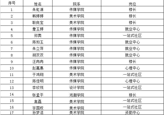 附:学生处勤工助学公示名单