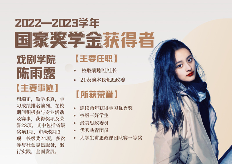2022-2023学年国家奖学金获得者风采展示|戏剧学院 陈雨露