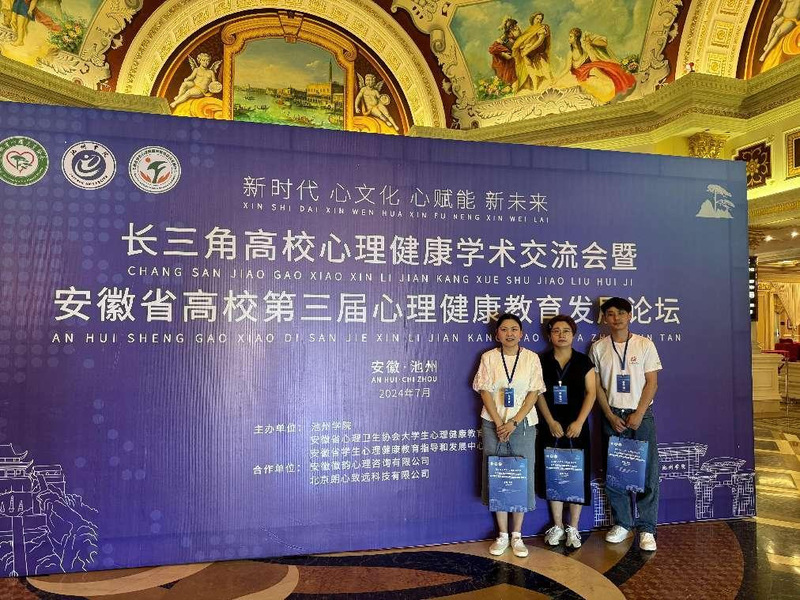 2024年7月5日,长三角高校心理健康学术交流会暨安徽省高校第三届心理健康教育发展论坛在池州召开,本次会议由池州学院、安徽省心理卫生协会大学生心理健康教育与咨询专委会和安徽省学生心理健康教育指导和发展中心主办。我校戏剧学院专职辅导员、学生管理办公室主任孔晓欣、舞蹈学院专职辅导员兼团总支书记贾方敏、大学生心理健康教育与咨询中心郝驰原老师参加了此次论坛。