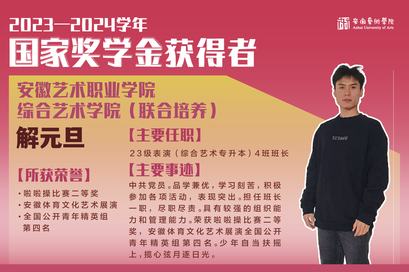 2023-2024学年国家奖学金获得者风采展示|安艺职(联合培养)解元旦