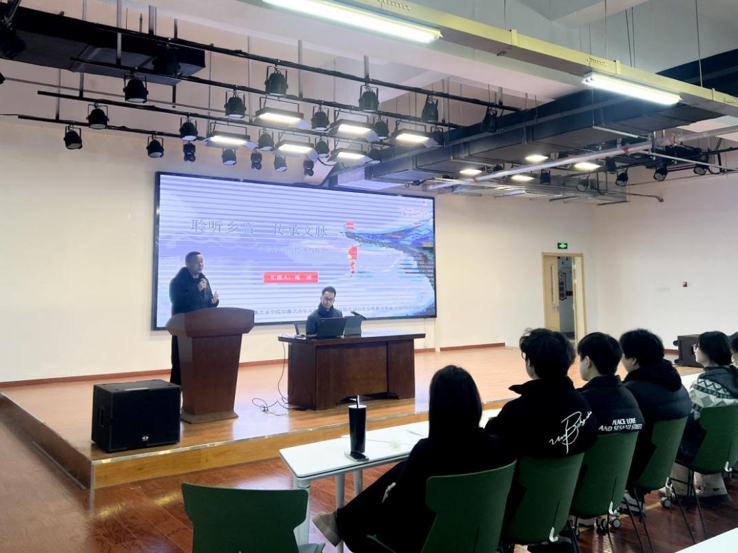 讲座围绕“基于校企合作的民族技艺人才培养”主题展开,蒋涛从民歌的定义、民歌与民族声乐、传承民歌的意义以及传承方式四个方面进行了深入浅出的讲解。他结合自身艺术实践,以生动的案例和优美的歌声,带领同学们领略了安徽民歌的独特魅力,阐释了民歌作为民族文化瑰宝的重要价值。