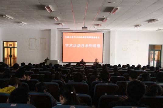 新闻播音系学术活动月系列活动于4月15日拉开帷幕,我系副主任包鹏程教授做《视觉时代与视觉文化》专题讲座,系主任吴孔铎教授主持会议,系全体老师与200多名学生聆听了这次讲座。