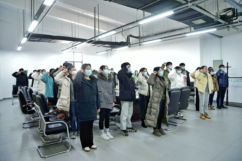 本次大会围绕接收陈龙、张露露等12名发展对象为预备党员事宜,进行充分讨论与表决通过。宣传委员郝驰原带领预备党员进行入党宣誓,全体正式党员起立,右手握拳重温入党誓词,铭记在党旗面前的庄严承诺,坚定为共产主义信仰而奋斗终生。