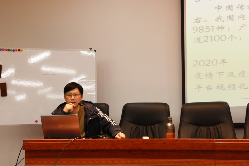 3月24日下午,由新闻播音系主办的2021年首期“少荃湖传媒讲坛”在美术楼学术报告厅举行,来自合肥学院的副教授王冠博士为100多位同学做了一场题为《媒体融合视域下的视频新闻生产》讲座。讲座由系教科研办公室主任周正主持。