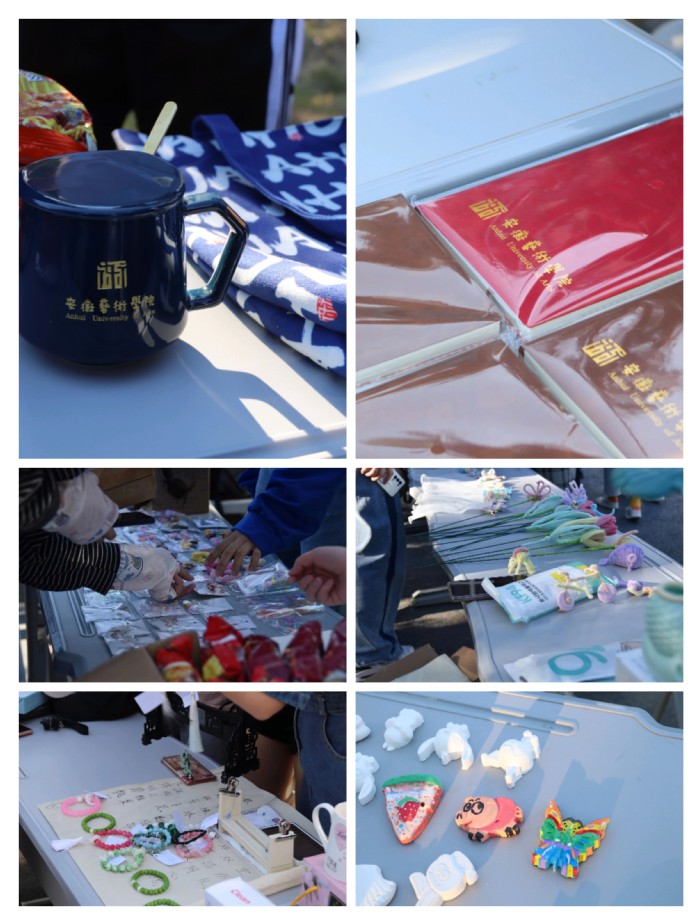 走进跳蚤市场,摊上摆着琳琅满目的小商品。陶艺半成品焕发出新的色彩,兔耳朵戒指找到了新的主人,闲置的桌子重新投入“工作”。新闻播音系团总支拿出最新文创产品,鼓励同学们用自己的闲置物品来换取心仪的文创。