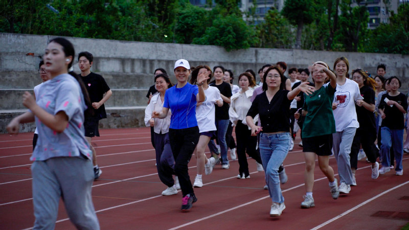 5月25日晚,传媒学院近60名师生在操场开展“525我爱我”健康跑活动。传媒学院党总支书记、院长蔡正兰,辅导员吕凤丽、郝驰原参加活动。