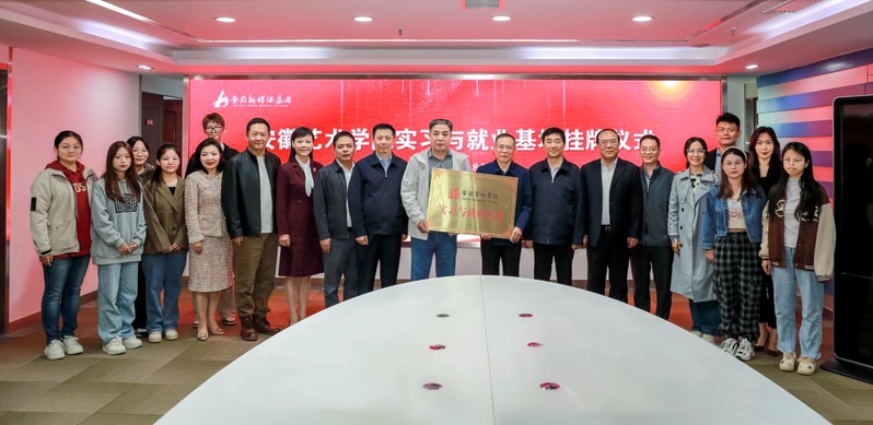 为帮助毕业生走好迈出校门的第一步,柳友荣带队,教务处处长韩大国,传媒学院党总支书记、院长蔡正兰等,带领学生到安徽新媒体集团实习报到,并参加安徽艺术学院实习与就业基地挂牌仪式,与安徽新媒体集团共建实习与就业基地。