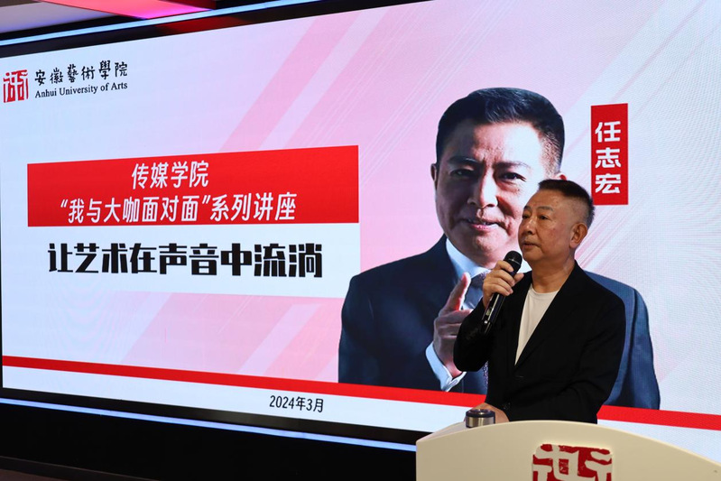 讲座中,任志宏老师结合自身经历,与师生分享从业以来的实践积累和感悟,以及对有声语言表达艺术的坚守和传承。他表示,有声语言是一门艺术,需要不断积累自己的人生阅历,丰富自己的情感,才能够进行好的语言表达艺术创作。任志宏还强调实践对艺术领域的重要性,勉励播音与主持艺术专业的同学要主动学习,从相关艺术门类中充分寻找兴趣与灵感,促进有声语言艺术表达的情感调动。