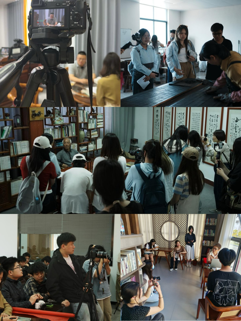 山水汇合地,文化繁盛处。实践中,师生先后参观胡适故居、绩溪博物馆、中国(绩溪)徽菜博物馆等多个场馆,拍摄并体验胡适一品锅的制作,了解一品锅的历史文化和里面珍藏的故事。在茶叶加工厂,采风的各组学生和指导老师深入讨论采访内容、打磨采访提纲、采集报道素材,用镜头记录着“新农人”的故事。“天下徽墨在绩溪”,同学们走进老胡开文墨厂,用摄影摄像、写作等专业技能,将采风中的精彩时刻和心得体会转化为富有创意的新闻作品。