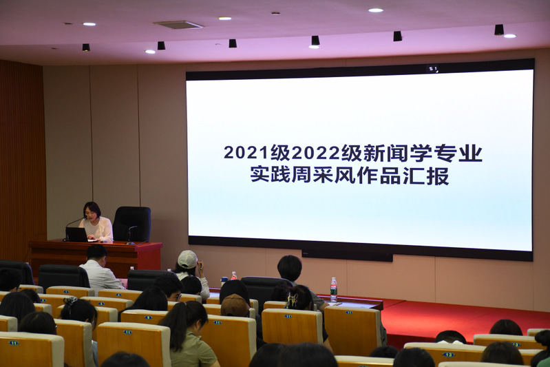 6月12日下午,由安徽艺术学院传媒学院新闻学教研室主办的新闻学专业2021级、2022级采风作品汇报会在美术楼报告厅举行。安徽广播电视台资深纪录片导演鲁慧,传媒学院党总支副书记张雷雷、副院长马宏受邀作为评委,并对作品进行点评。新闻学教研室主任戚庆燕、部分专业教师、辅导员及两个年级全体学生参加活动。