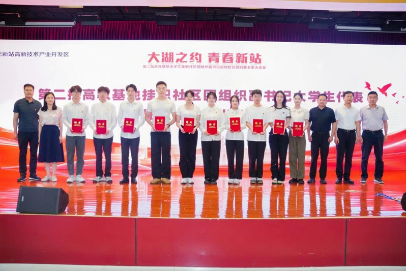 为进一步深化高教基地党建联盟建设,推动校地共建工作推深走实,充实基层团组织工作力量,吸引更多优秀大学生参与基层社会治理和服务,增进本地学子对合肥新站高新技术产业开发区的了解和认同,区团工委面向高教基地院校,选拔第二批全日制在读大学生挂职社区团组织副书记,我院熊宁涵、杨鑫茹、张道林等九名同学成功入选。