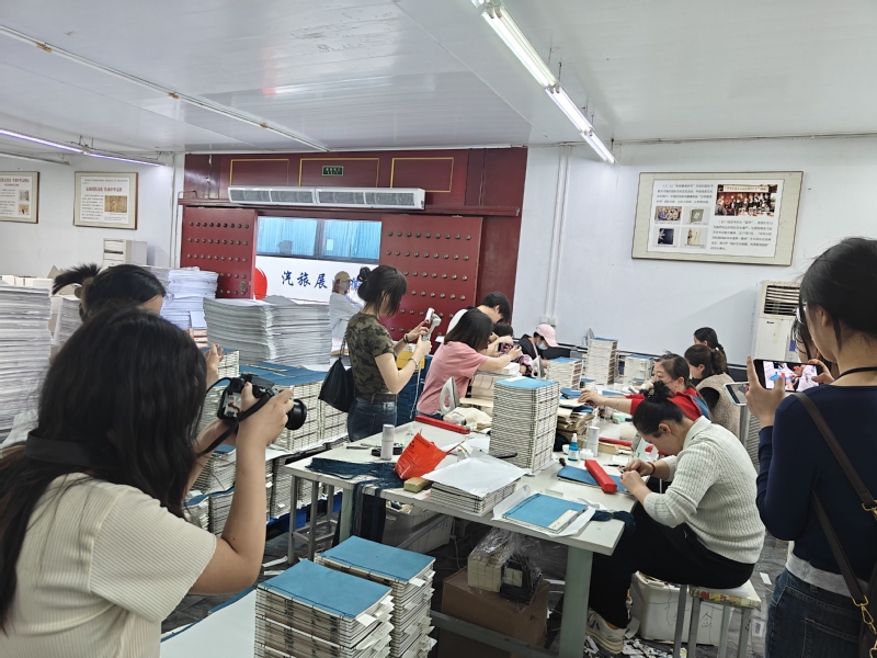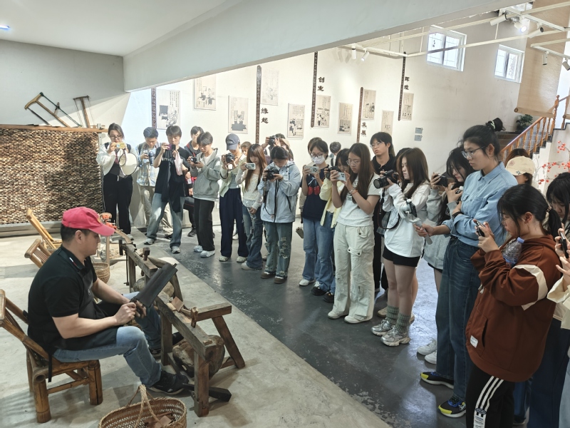 在泾县木梳博物馆、泾县宣纸帘非遗人家和泾县茂林花砖厂,亲身观看非遗技艺展示,采访非遗传承人,记录下他们的坚守与传承。指导老师结合现场教学,强调要善于在传统技艺中挖掘时代价值,让老手艺焕发新光彩。