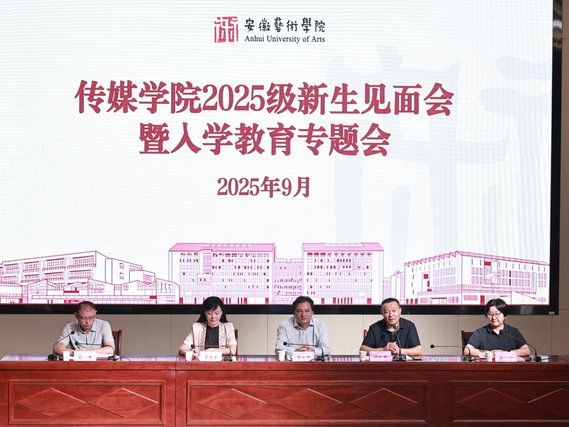 9月17日下午,传媒学院于崇德楼报告厅召开2025级新生见面会暨入学教育专题会议,安徽艺术学院党委委员、副院长曹晓富,传媒学院党总支书记刘长华、院长蔡正兰、副院长马宏、刘涛出席,会议由刘涛主持。
