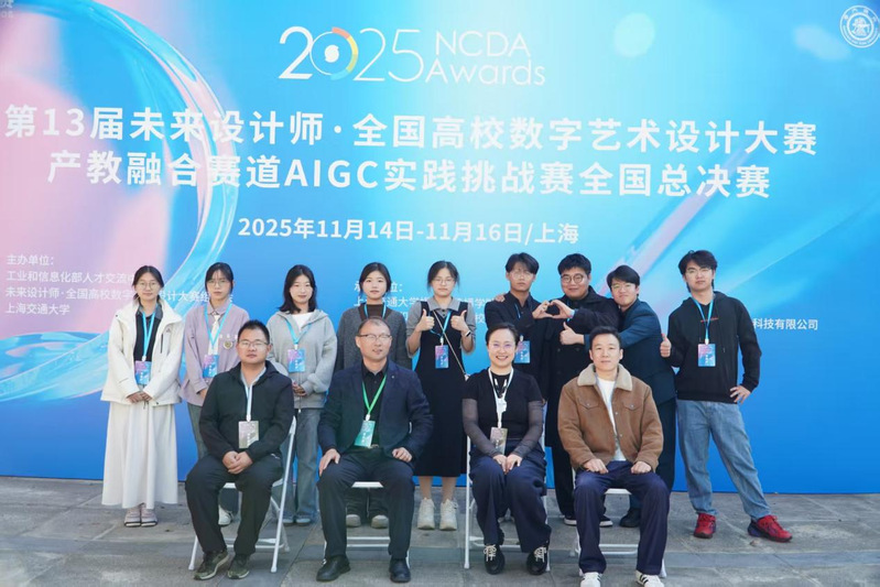 第13届未来设计师·全国高校数字艺术设计大赛产教融合赛道AIGC实践挑战赛全国总决赛于11月16日在上海交通大学落下帷幕。传媒学院学子凭借扎实的专业功底与创新实践能力脱颖而出,斩获一、二、三等奖各1项,展现了传媒学院在数字创意与 AIGC 技术融合领域的教育成果。