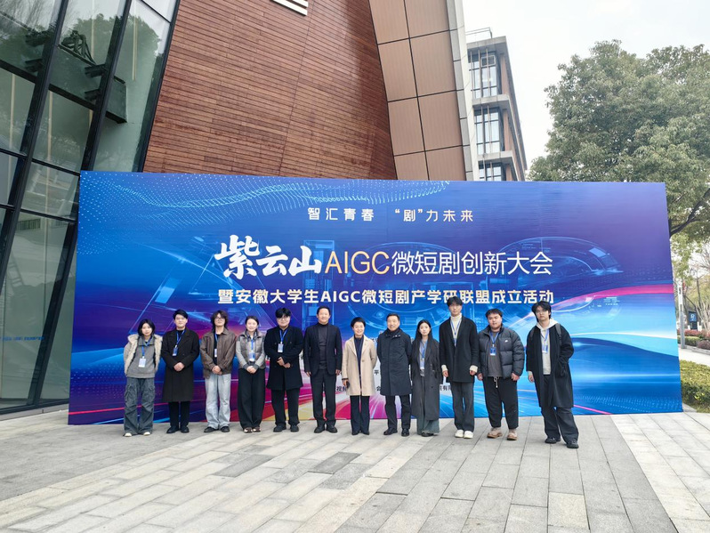 252026-03传媒学院加入AIGC微短剧产学研联盟3月24日上午,以“智汇青春,‘剧’力未来”为主题的紫云山AIGC微短剧创新大会暨安徽大学生AIGC微短剧产学研联盟成立活动,在合肥市紫云山(包河)文化创意产业园成功举办。传媒学院作为首批联盟成员单位参与大会各个环节,全方位展现了学院在传媒艺术教育与AIGC技术创新融合领域的实践成果与育人特色。校党委委员、副校长陈林出席本次活动,我院师生代表随团参会。本次活动由中共安徽省委宣传部指导,安徽省教育厅、安徽省人力资源和社会保障厅、安徽省文化和旅游厅、安徽省文学艺术界联合会、安徽广播电视台联合主办。活动现场,省委常委、宣传部部长钱三雄出席大会并宣布安徽大学生AIGC微短剧产学研联盟正式成立,标志着安徽省首个聚焦大学生AIGC微短剧领域的产学研合作平台正式落地。在联盟成员单位授牌仪式上,主办单位领导为包括我校在内的首批30所高校授予“安徽大学生AIGC微短剧产学研联盟成员单位”牌匾,传媒学院将作为学校对接联盟的核心执行单位,深度参与安徽AIGC微短剧产业生态的共建共享工作。在大会高校创作风采展示环节,传媒学院学生团队的原创AIGC长篇动漫作品《悟性逆天》(暂用名)成为现场亮点。团队依托AIGC