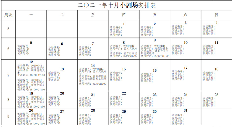安徽艺术学院小剧场、音乐厅10月使用情况(随时更新)