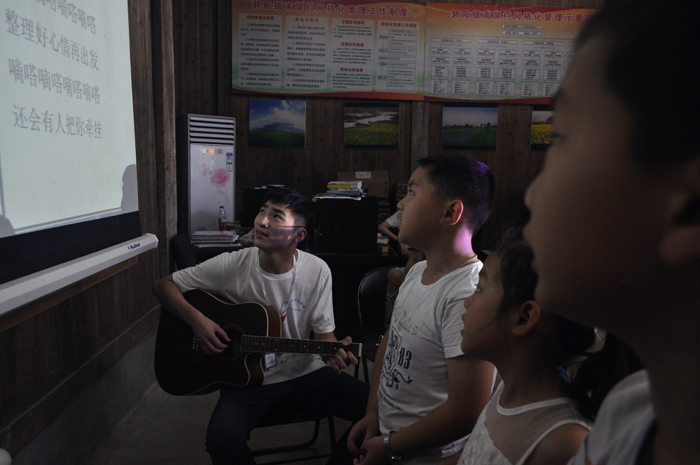 经过一天的相处,我院“三下乡”服务团成员俨然已经和南屏村的30多位留守儿童热闹地打成了一片,“会画画的姐姐”、“弹吉它的帅哥哥”成了孩子们口中对志愿者们亲切又带着点崇拜的称呼。