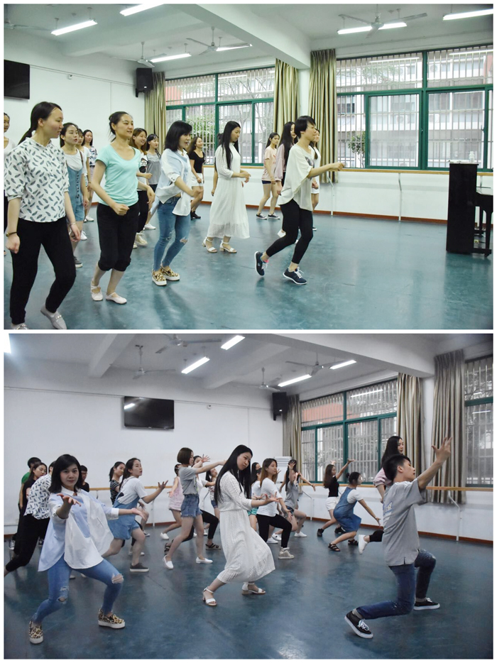 为了扩展专业视野,促进全面发展,6月15日下午,音乐舞蹈系邀请了“昊越健身学院”的钱威、丁洁两位讲师来校开展“激发动感活力的身体语言——有氧舞蹈与Jazz舞蹈”的体验课,30多名教师及学生参加了此次体验课。