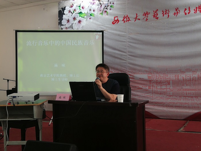 当日下午,施咏教授为我院师生举行了题为《流行音乐中的中国民族音乐》的学术讲座。讲座由音乐舞蹈系主任孙来法教授主持。