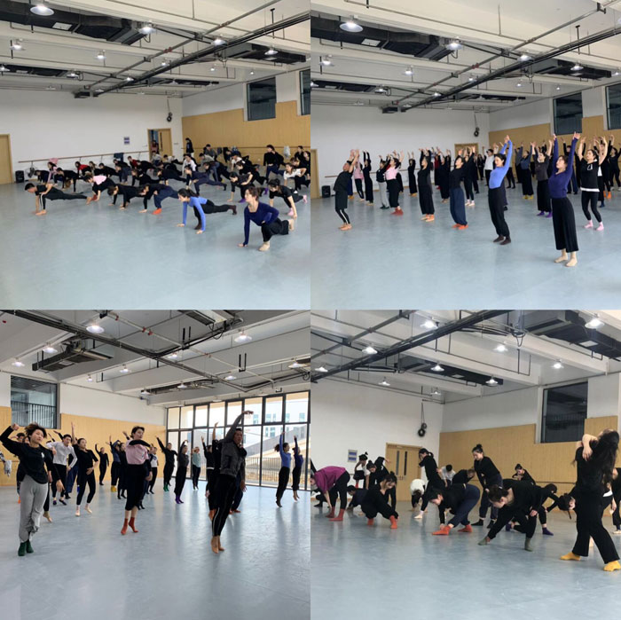 本次实践交流的目的是培养学生在自然形态基础上,探索、尝试多维度身体运动方式,并进一步开发学生的身体潜能。姜洋从细微的身体末梢神经意识讲起,从呼吸发力延伸到舞蹈表现力的多个方面,全方位多角度地剖析了中国舞蹈演员的不足与问题,并以此为题,教会学生举一反三。短短两天,学生们在体验中得到快速成长。