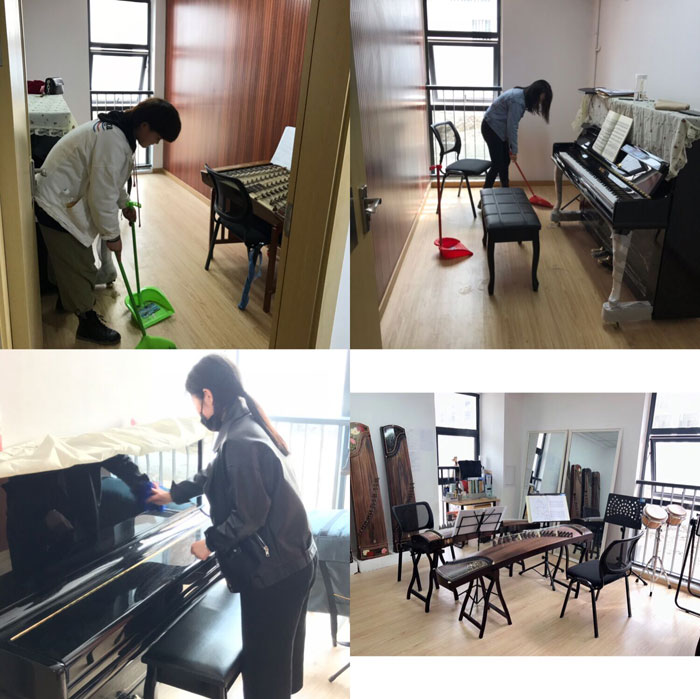 志愿者们手持扫帚、拖把等清洁工具,进入琴房扫除灰尘垃圾,小心擦拭琴房桌椅、钢琴,将琴房内的物品摆放整齐,使音乐北楼的各个琴房干净整洁、焕然一新。练琴的同学纷纷给志愿者们的辛勤劳作点赞,并不断有新同学加入志愿者队伍之中。同学们表示今后应更加爱护学校的一桌一椅,在全系范围内营造团结一致、积极向上、服务同学、服务校园以及向雷锋同志学习、积极弘扬雷锋精神的良好氛围。